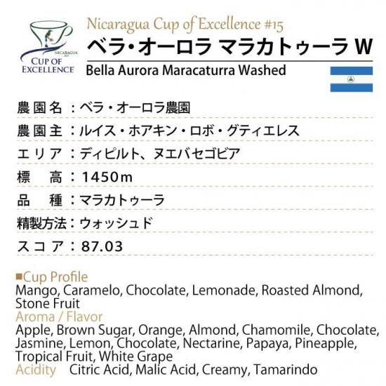 [完売御礼]《COE2025 #15》 ニカラグア ベラ・オーロラ マラカトゥーラ ウォッシュド(Nicaragua COE #15 Bella Aurora Maracaturra Washed)